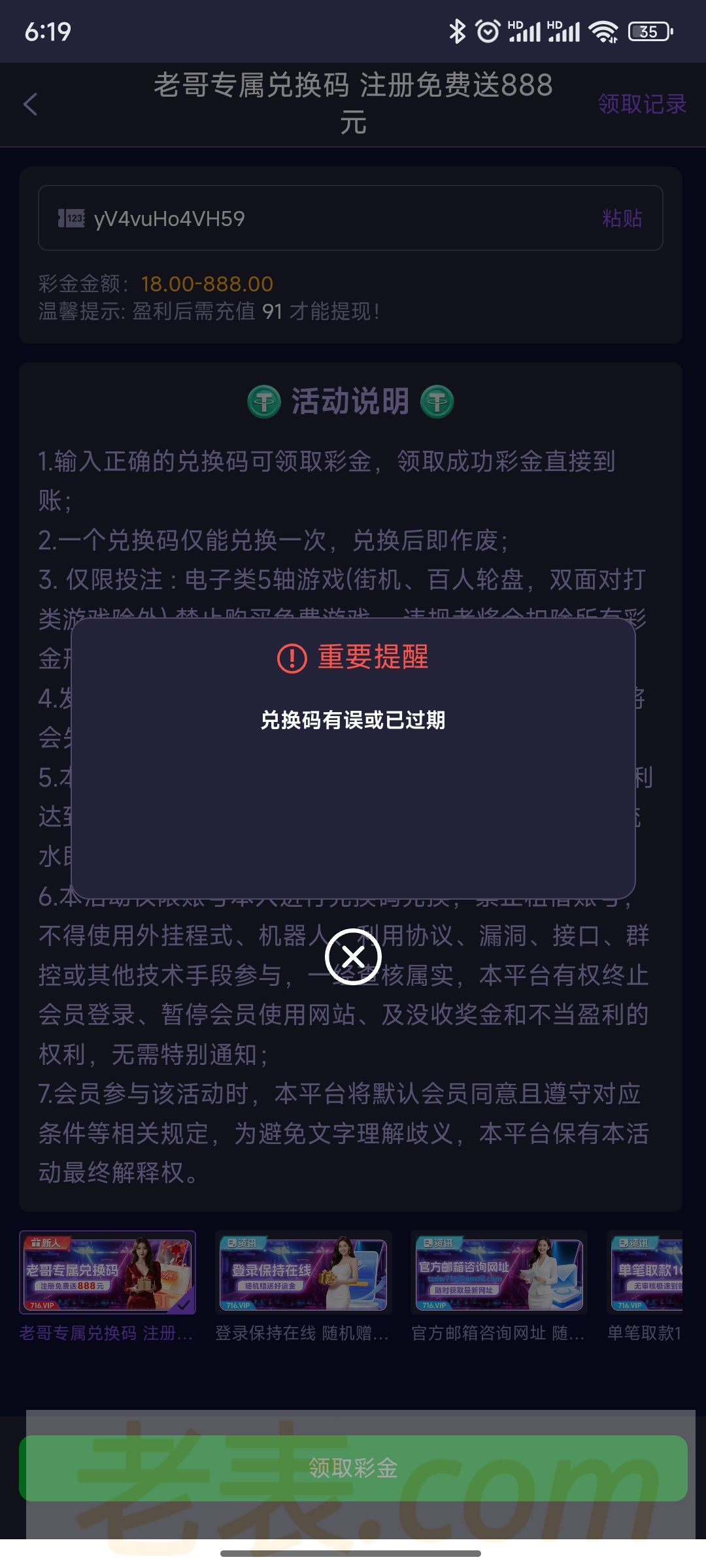 兑换码用不了