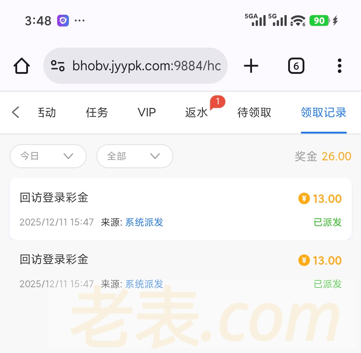 接到电话上号领了26 上去看看有没有 只能玩电子3倍
