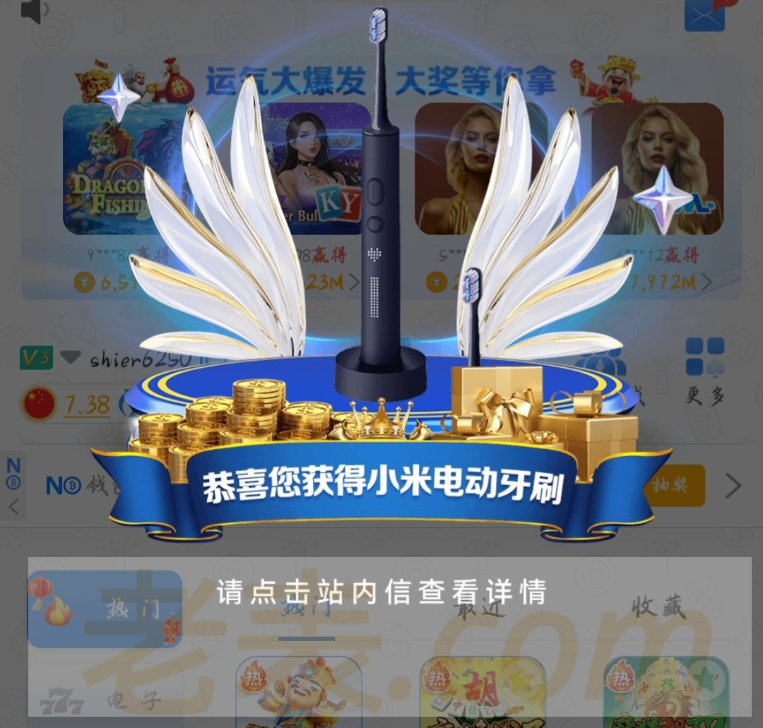 以前注册过账号的,今天登录,有弹窗或者站内信通知里面有彩金或者实物奖励,实物拿到了还能再领一笔彩金!